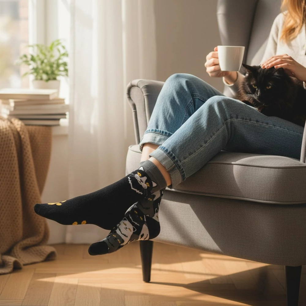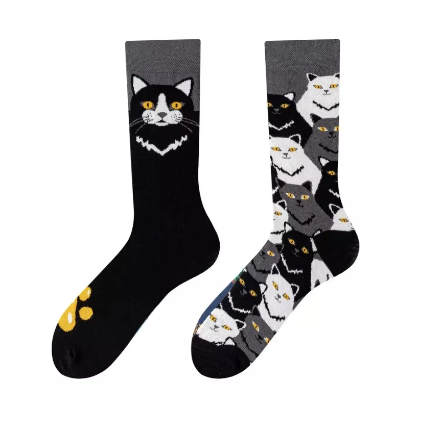 Ez a fekete macska biztosan szerncsét fog hozni! Ahogy egy macska kötelező hozzátartozója egy gombolyag, úgy a Tiéd az lehet egy macskás vidám zokni. Cicásoknak kötelező darab.