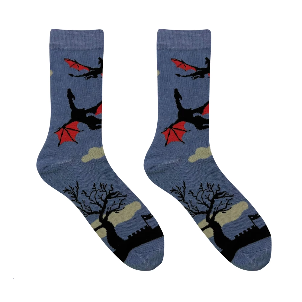 Repülj a fantázia világába! A sárkányos zokni minden lépésedet kalanddá varázsolja – kényelmes, stílusos és tele varázslattal.