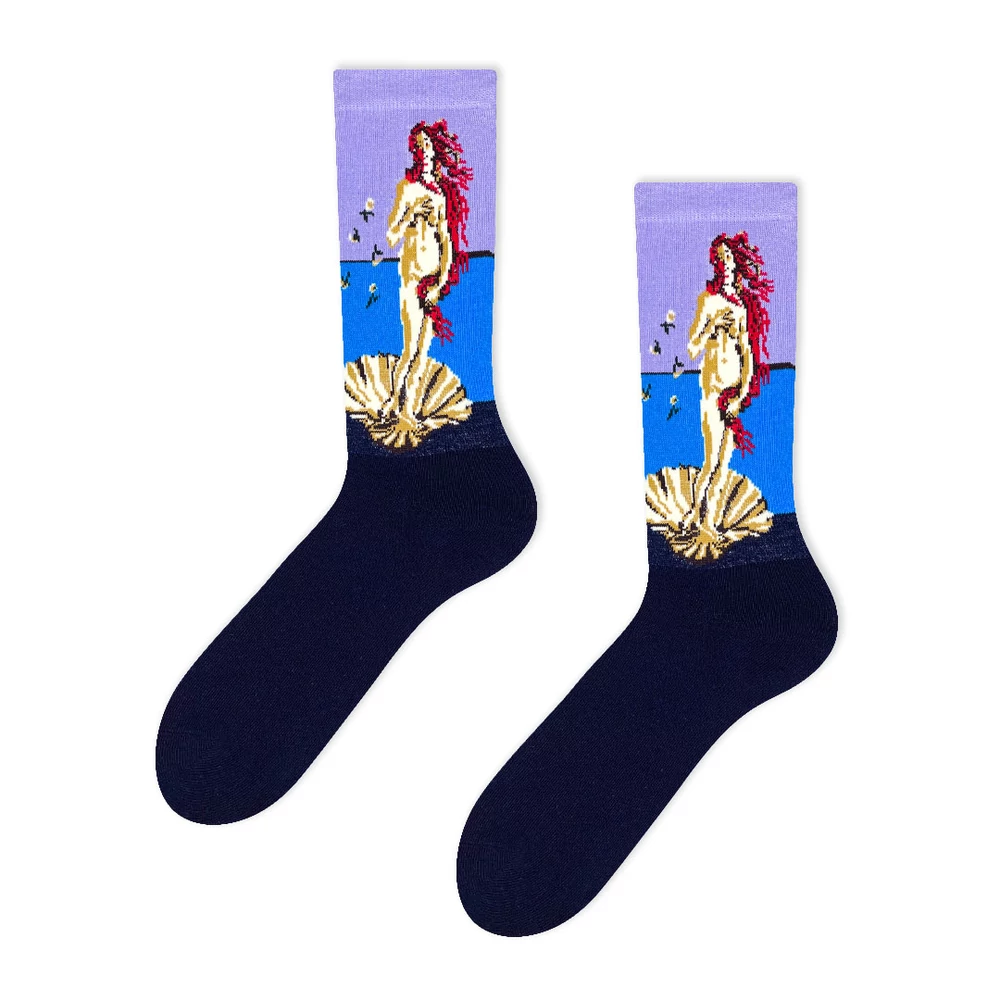 Szereted a művészetet? Biztosan nem ismeretlen számodra Boticellitől a Vénusz születése. Akkor ez a zokni elengedhetetlen kelléke a ruhatáradnak. Művészeknek kötelező darab.